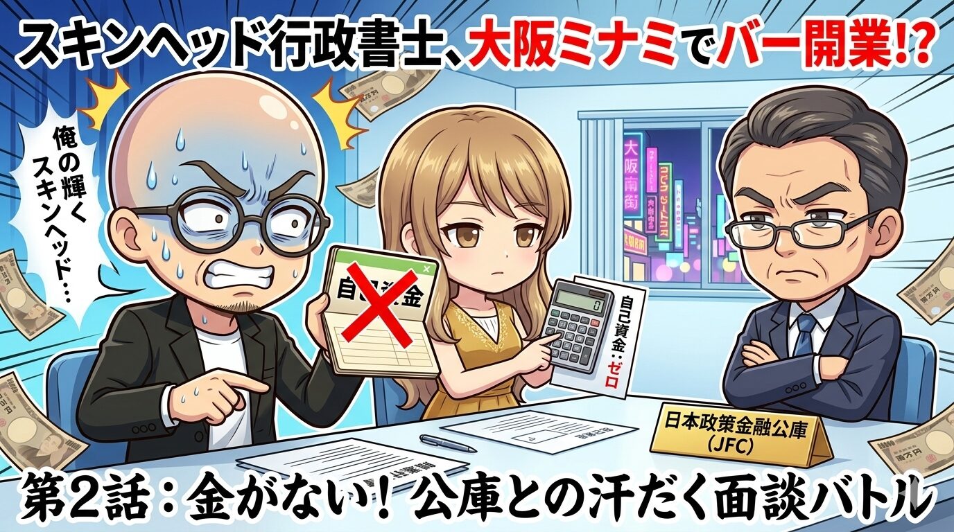 行政書士: 「そ、それは……せや! 『創業融資』や! 俺は行政書士やぞ? 融資のプロや! 公庫(日本政策金融公庫)に行って、ガツンと借りてきたるわ!」